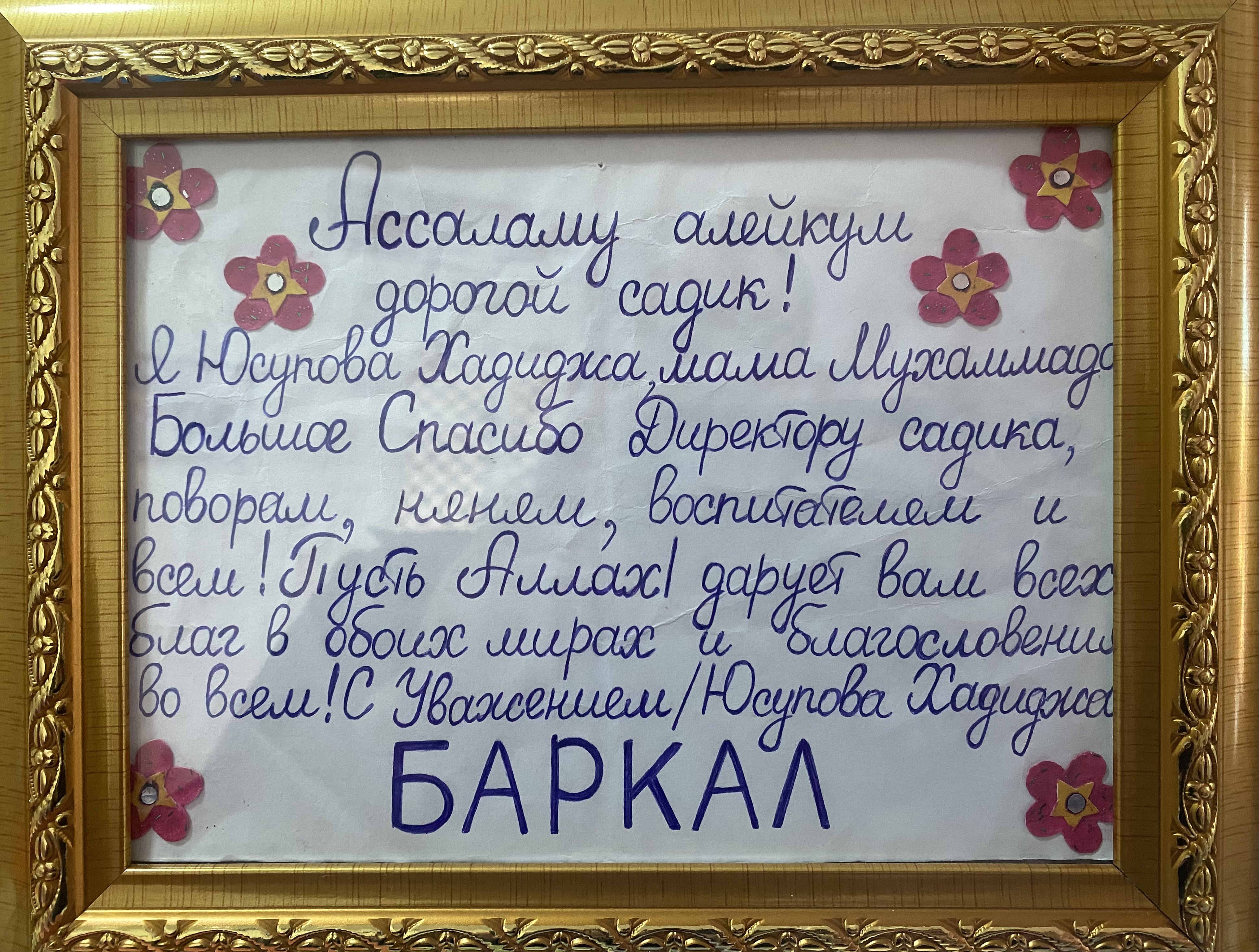 Благодарственное письмо коллективу сада
